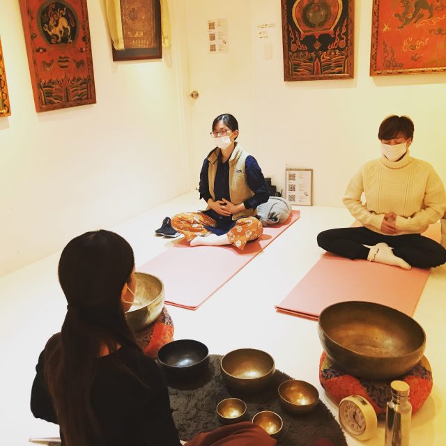- シンギングボウルとヨガの呼吸法でモヤモヤもすっきり