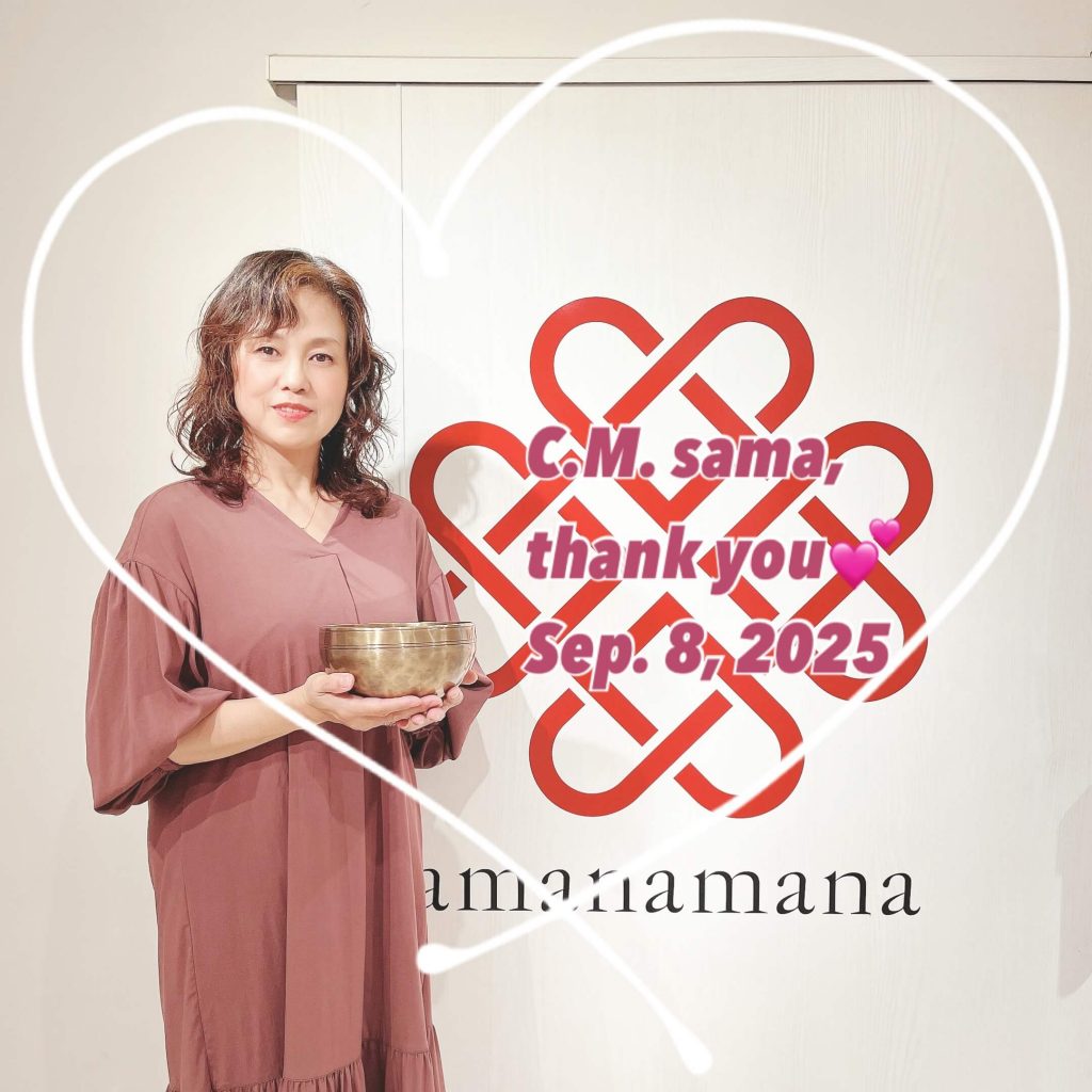 ご自分のシンギングボウルをお求めにアマナマナをお選びくださったC.Mさま。先月初級講座をご受講後、ご自身でゆっくりシンギングボウル選びを楽しみたいと改めてご来店いただきました💕