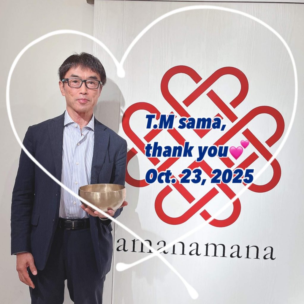 とてもご誠実なお人柄を感じるT.Mさま。アマナマナを知ってから、チベットをご縁に、シンギングボウルにもご興味を持たれて、ご自分の瞑想でお使いになるご予定とお話しくださいました💖