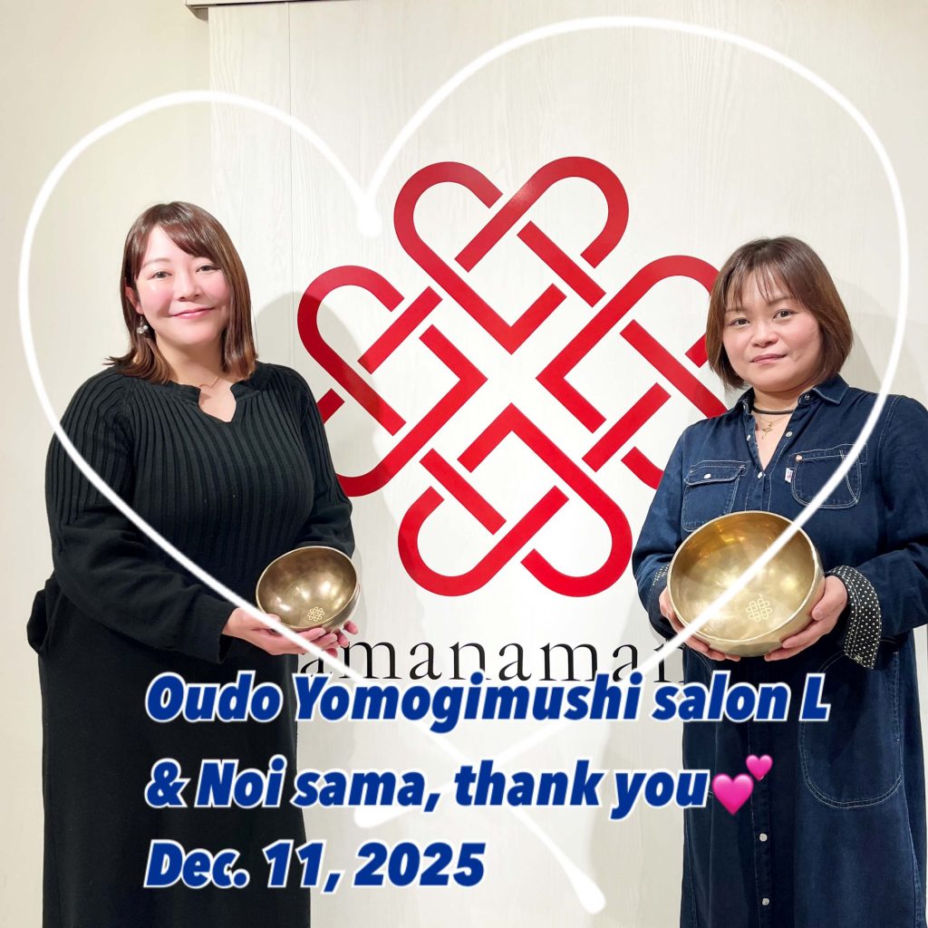 チャネラーの noiさま(写真右)と、セラピストでチャネラーの黄土よもぎ蒸しサロンLさま(写真左)。「アマナマナには以前から来てみたかった!」と、浄化のためのシンギングボウル探しに仲良くお二人でご来店くださいました💕