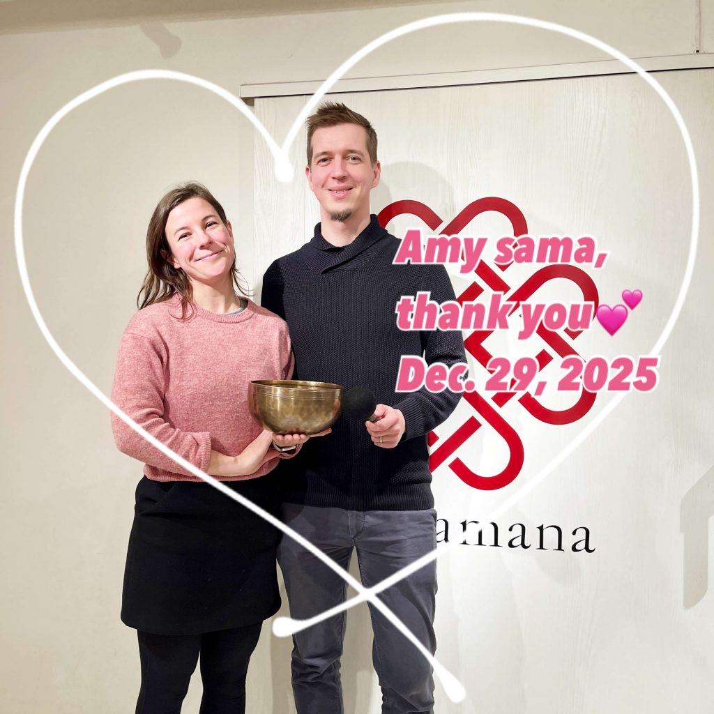 ヨガの中にシンギングボウルを取り入れたくて、日本でなんとか入手できないかと検索されて、アマナマナに行きついたというエミイさま😉✨