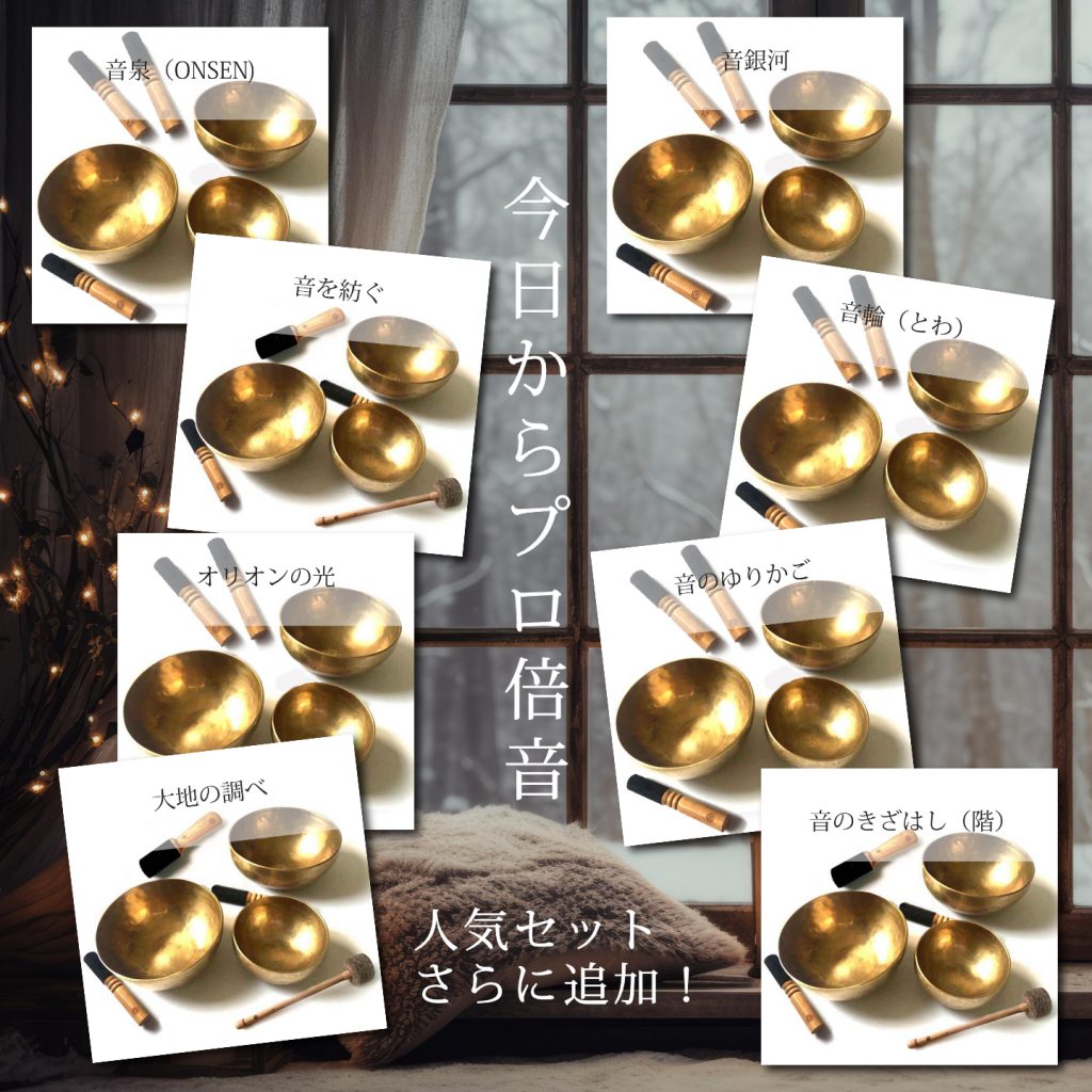 大サイズの深い倍音が楽しめるダイナミックなセットやコンパクトでも、個性豊かな美しい倍音が楽しめるセットなど