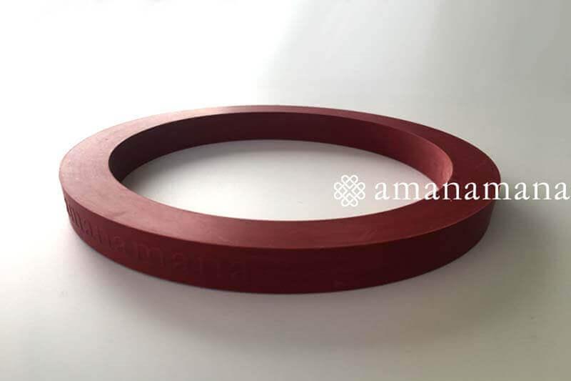 シンギングボウル・リングの大サイズは、アマナマナの中サイズから、特大サイズまでの幅広いシンギングボウルのサイズにフィットします。シンギングボウルを置いておくための台として、また、重ねて持ち運ぶ際も、底に傷つかないように緩衝材としても活用できます。マレットやスティックのいずれの演奏時も、これまでにない安定感と倍音の美しさで、手放せなくなります。