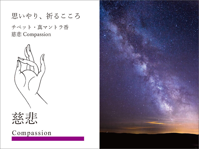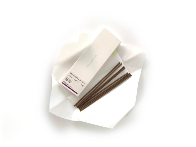 静けさとあたたかさを併せ持ったお香は、誰かを想う心、寄り添う心を自然に引き出してくれます。まさに「慈悲」の名にふさわしい、崇高で高貴、そしてどこか懐かしく親しみのある香りで、日本人が大切にしてきた「和」の感性にも通じ、心をやさしく包みこみます。