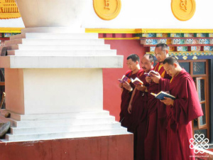 そして、阿弥陀経に続いて、世界の平和を祈る高次のお経をリンポチェと呼ばれる高僧が選び、僧、尼僧らがそれに続きます。今回はリンポチェを始め、ケンポと呼ばれる非常に尊敬されている高僧、そして、アニ(尼僧)ら総勢19名の賑やかなプジャとなりました。