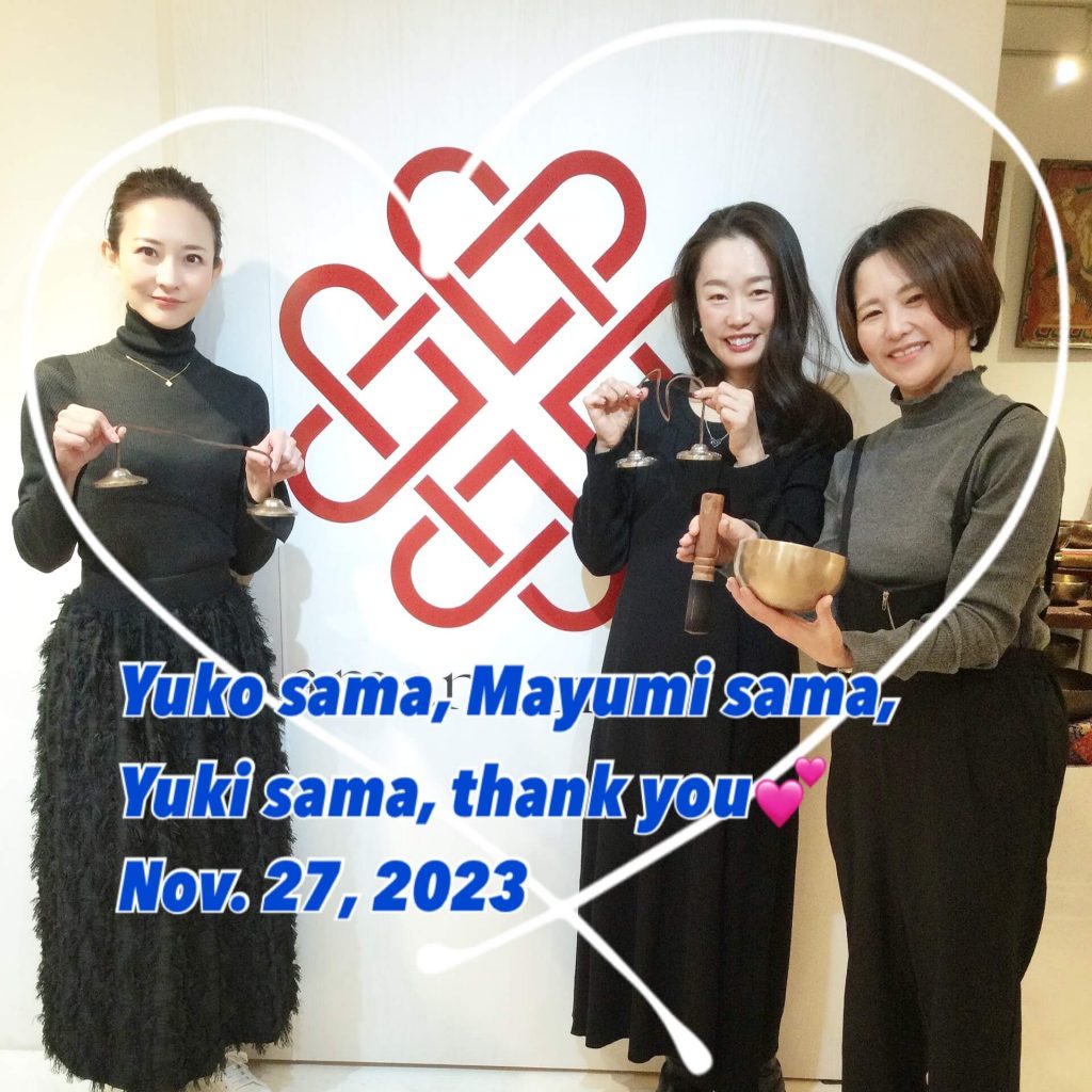 お三人とも、ヨガのレッスンにどんな風に使ったらよいかなど研究熱心。ティンシャは空間の浄化等にも使える旨をお話ししたところ、早速、取り入れたいとのこと。ヨガを教えているスタッフの担当の日だったので楽しくお話しできました😍